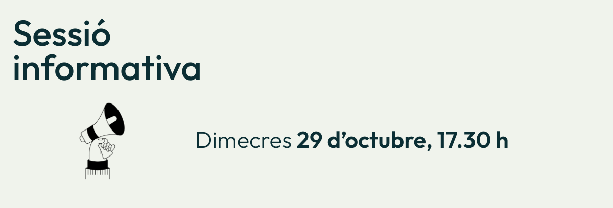 La sessió informativa virtual, prevista per al dia 29 d’octubre a les 17.30 h, té per objectiu explicar el procés, contextualitzar el tema i realitzar uns primers apunts teòrics sobre la figura de la sòcia de treball. Aquesta sessió quedarà gravada i estarà disponible al Participa.