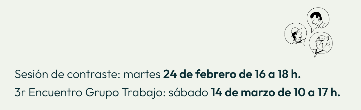 Esta fase tendrá una primera parte abierta a toda la base social (Grupo Focal) y una segunda parte en la que participará un grupo reducido de personas (Grupo de Trabajo).