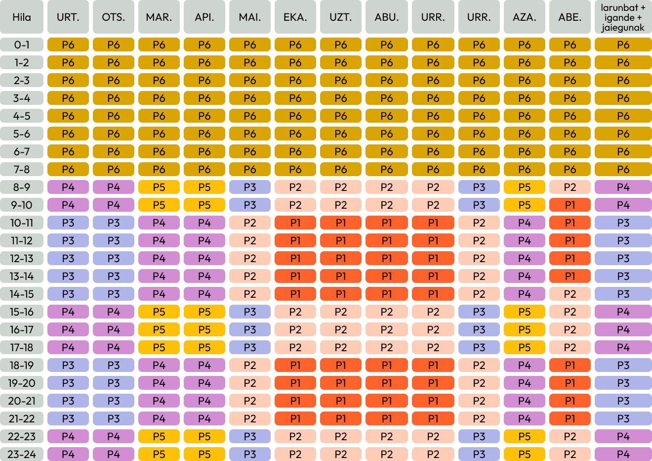 Eguna ordutegi-tartetan banatzen da, eta ordutegi-tarte bakoitzak prezio desberdin bat du. Ordutegiak beti berberak direnez, fakturan aurrezteko, etxetresna elektrikoak erabiltzeko edo gailuak kargatzeko ordua planifikatzea ahalbidetzen du.