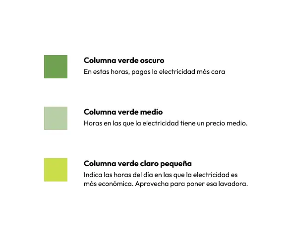 Este gráfico te da información para que puedas adaptar tu consumo a los horarios más económicos.